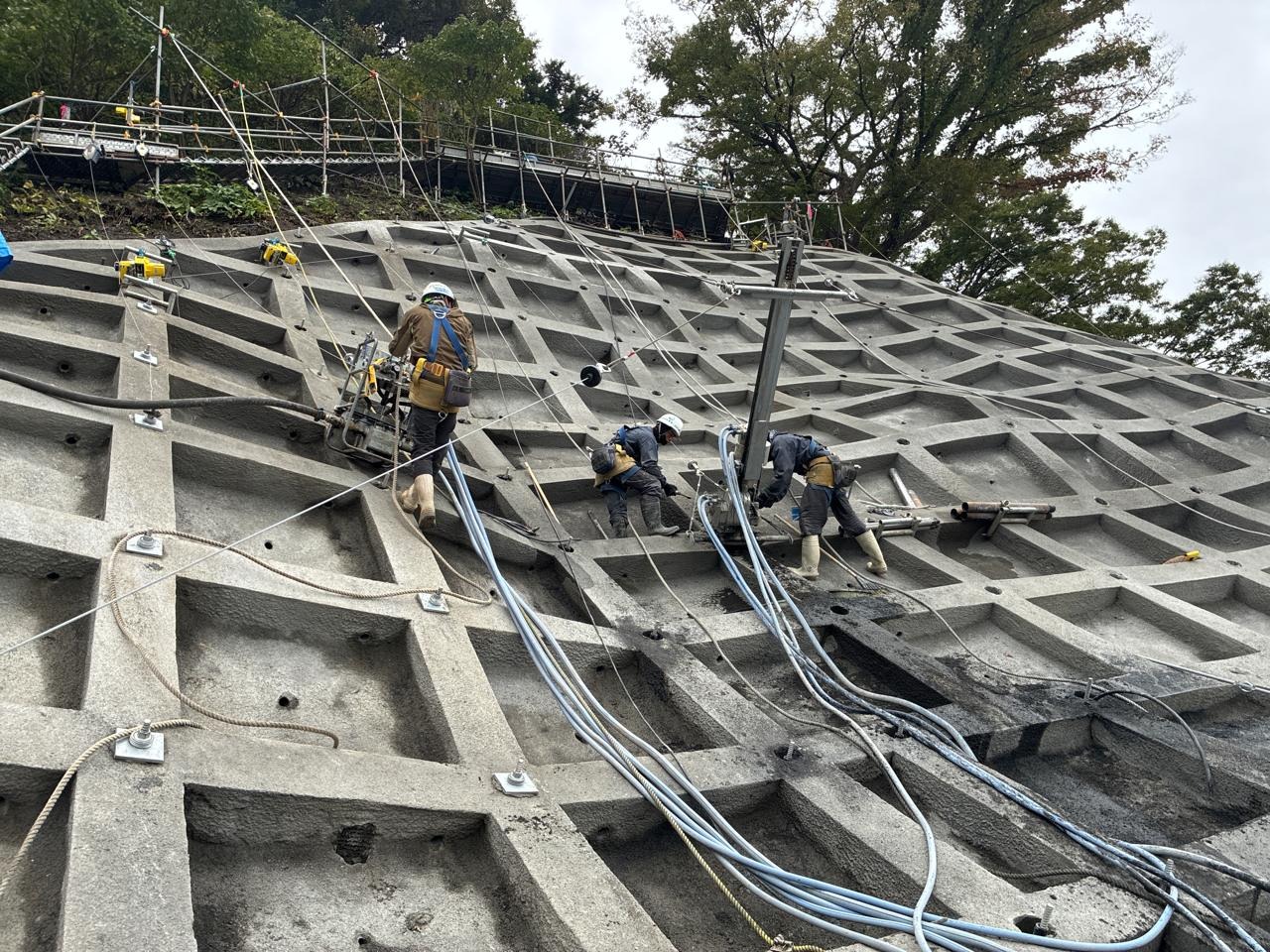 10月下旬より鉄筋挿入工の施工を開始しました。